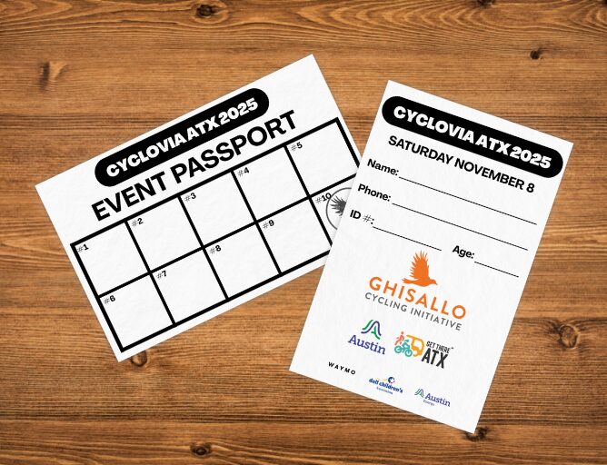 Pick-up your Cyclovia ATX Event Passport at the event registration and check-in booth (NE corner of Zach Scott St & Tilley St) in-person.